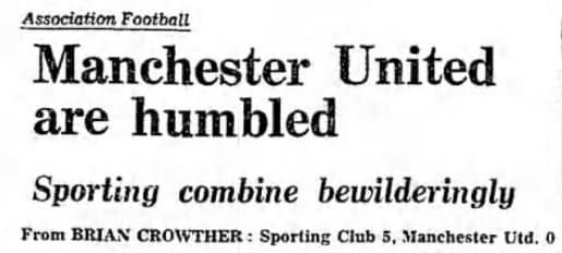 Logo depois, o time viveu outro capítulo épico de sua história. O adversário foi o poderoso Manchester United. Treinados pelo mítico Sir Matt Busby, os Red Devils ostentavam uma linha de frente histórica, com Bobby Charlton, Denis Law e George Best. Sem pestanejar, em casa eles mostraram o que valiam. Com um tento de Charlton e um hat-trick de Law, venceram por 4 a 1. Porém, não contavam com a irresignação sportinguista.