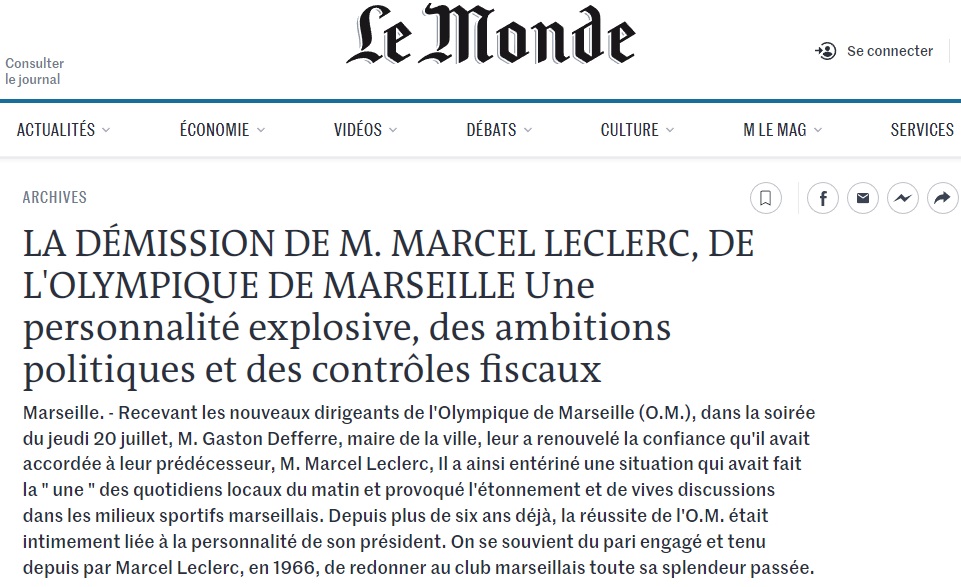 Em 1972, havia gente incomodada com Leclerc no seio da direção marselhesa. Nos últimos anos, o mandatário, por vezes, agira de modo impulsivo e autoritário. Exemplo claro foram algumas trocas de treinador um tanto arbitrárias e sem sequer ouvir os membros do conselho do clube. Lucien Leduc, por exemplo, fora demitido com o OM na liderança do Campeonato Francês, sete pontos à frente do segundo colocado.